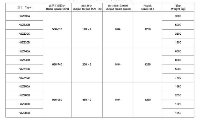 鑄軋機(jī)專用減速器主要技術(shù)參數(shù)見表1.