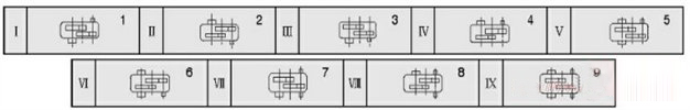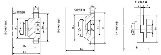 ZQ型減速器共有九種裝配型式見圖1,輸入軸伸為圓錐形,輸出軸端型式有圓柱型軸伸(Z型)、齒輪型軸伸(CA型)以及歐氏(十字滑塊)聯(lián)軸器型軸伸(F型)。